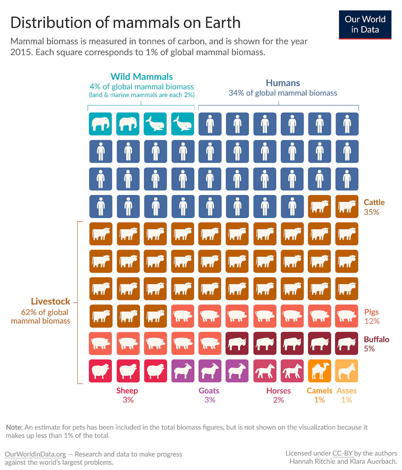 Then, there is the statistic that 96% of mammal biomass on Earth comprises humans and their livestock. This leaves only 4% of mammal biomass for all other wild mammal species combined, mainly because agriculture occupies three-quarters of the Earth's habitable land area. This means that humans have directly and indirectly appropriated much of the Earth's biomass.