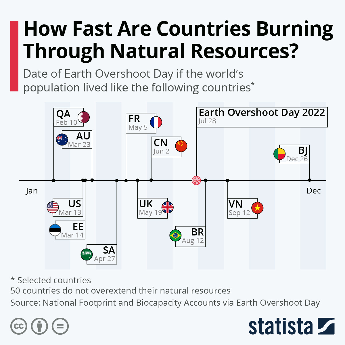 Here is what the Earth's overshoot looked like in 2022, as estimated by the Global Footprint Network, summarised for various countries by Statista.