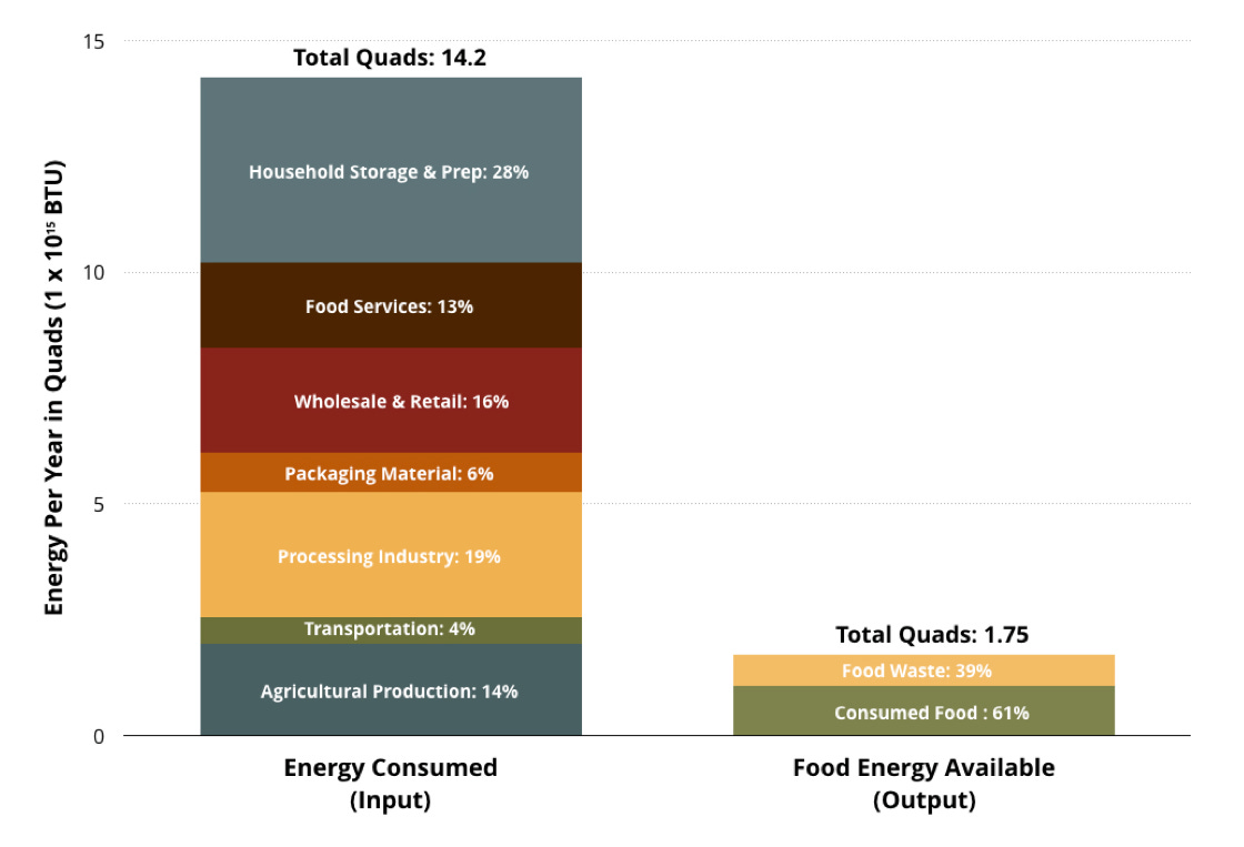 It is hard to quantify exactly how much external energy it takes to put food on a person's plate in New York or Mumbai, but here are some recent approximations from the US.
